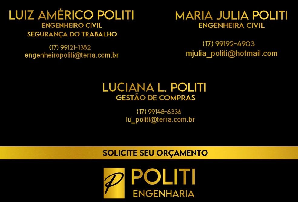 Contato: (17) 99121-1382 Email: engenheiropoliti@terra.com.br